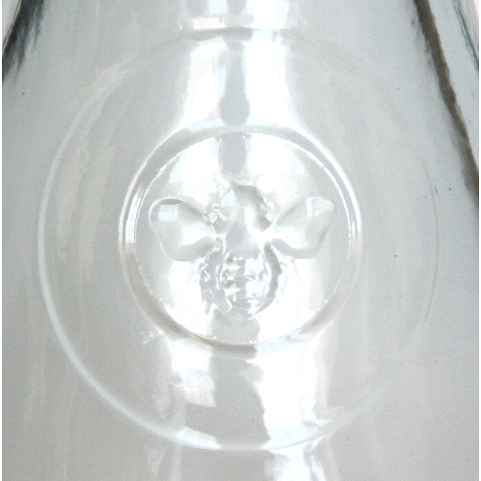 Dekanter in schwungvoller Formgebung mit Bienen-Motiv (Relief). Schlichte Eleganz - zum Servieren von Wasser, Eistee, Saft, Wein, Milch, etc. Als Blumenvase verwendet ein stimmiges Wohnaccessoire.